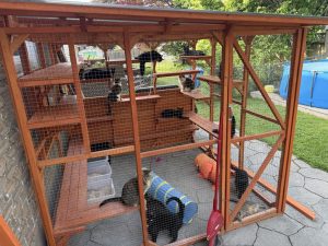 Cats enjoy fresh air, sunshine, and bird-watching in a fully secure outdoor enclosure.