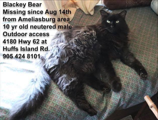 I had my friend call the number and leave a message there. I took my chance to call. A couple of minutes later, a lady named Miranda texted me back. We took a chance and texted back and forth. She told me it had been 5 years since her cat, Blackey Bear, went missing. I sent her some photos, and we both agreed that the resemblance was so strong and similar.
