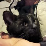 Yesterday, I got another black cat here too, and tonight, for some reason, I felt compelled to look at all the photos on the Lost Cat Network from 2017. I sat down and looked at over 700 photos of lost cats and kept coming back to one specific photo of a black cat who looked so much like Chance. It bothered me a lot that the photo showed a small white scar above the eye, and Chance had that. I went down and looked at Chance again and felt the urge to contact the number.