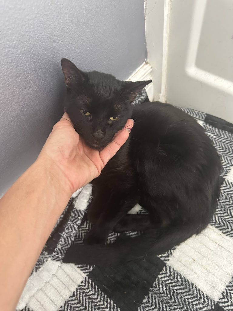 One late evening, we received a message about a black cat spotted outside town, about 20 minutes away. The person urgently requested our presence to determine if it was Whisper. Not willing to take any chances, we immediately drove to the location, navigating through the dark night. Upon arrival, we encountered a very thin black cat, visibly hungry and frightened. Though disappointed that it wasn’t Whisper, I gently picked up the cat, reassuring him that he was safe now.
